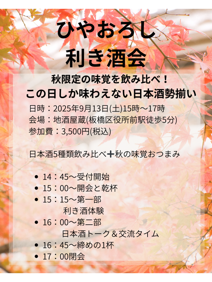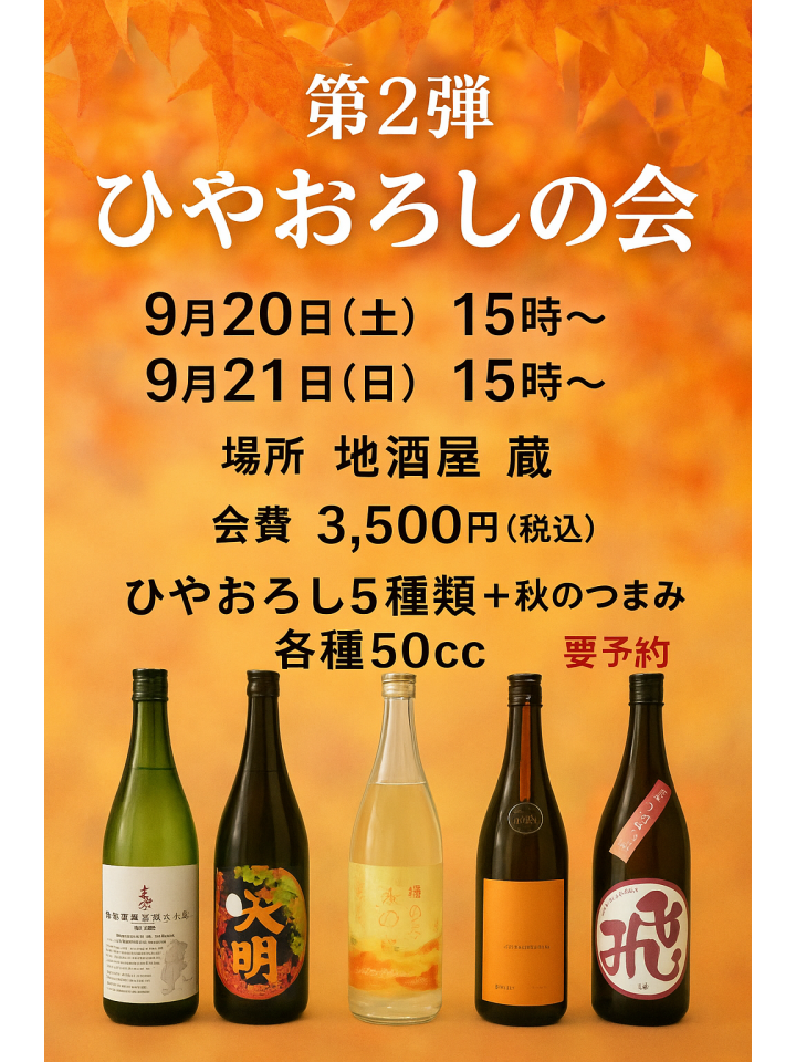 ◇9月13日(土)15時からひやおろし利き酒会を開催します。