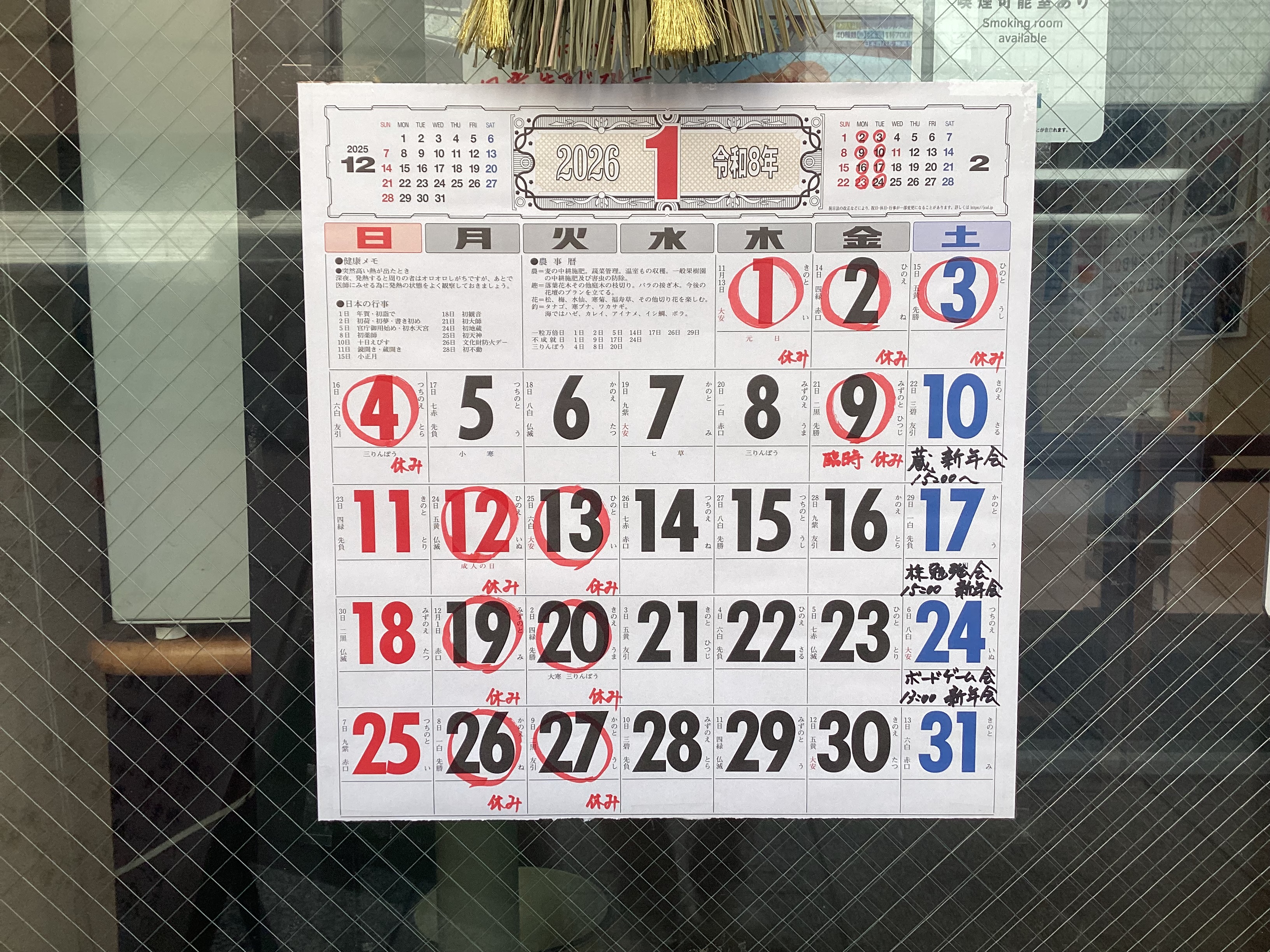 1月の定休日は、毎週火曜日と第1月曜日、第3月曜日となります。