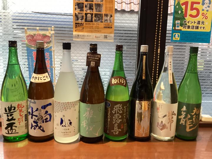 常山、大山、黒龍、一白水成、豊盃、飛露喜、雅楽代、一念不動